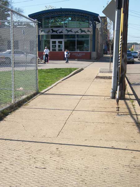 Inside the Animal Rescue League kennels are the sounds of thirty dogs all barking at once, drowning out anything else you might strain your ear to hear. It's easy to see how jaded the dogs become after spending more than a week here. The dogs all look forward to their walks, but instead continue to be surrounded by the cacophony of trains, buses, traffic, and factories that surround the neighborhood. There is no quiet here.
