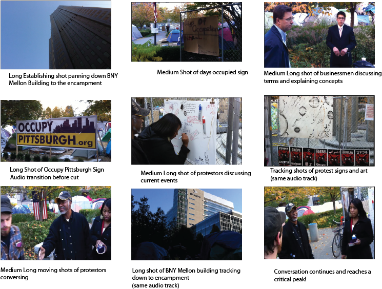 Occupy PittsburghFor weeks, protestors have been participating in the global "Occupy Wall Street" locally by occupying the Mellon Green downtown in a tent city. On November 11th, I would go downtown in the afternoon and simply document any of the happenings taking place at the encampment. I would talk to people (simply conversationally after getting permission to film from the individual) in a non-documentary, non-formal fashion. I would talk to them about how they think the protest is progressing, what life is like in the encampment, and things of that nature. Aside from just speaking to protestors, there is also a "Multi-working group meeting" taking place on the 11th that would be a specific event to capture.